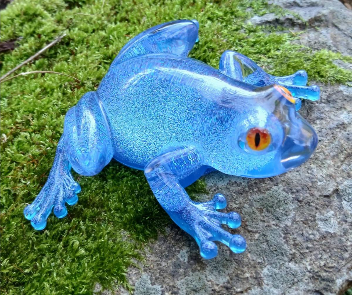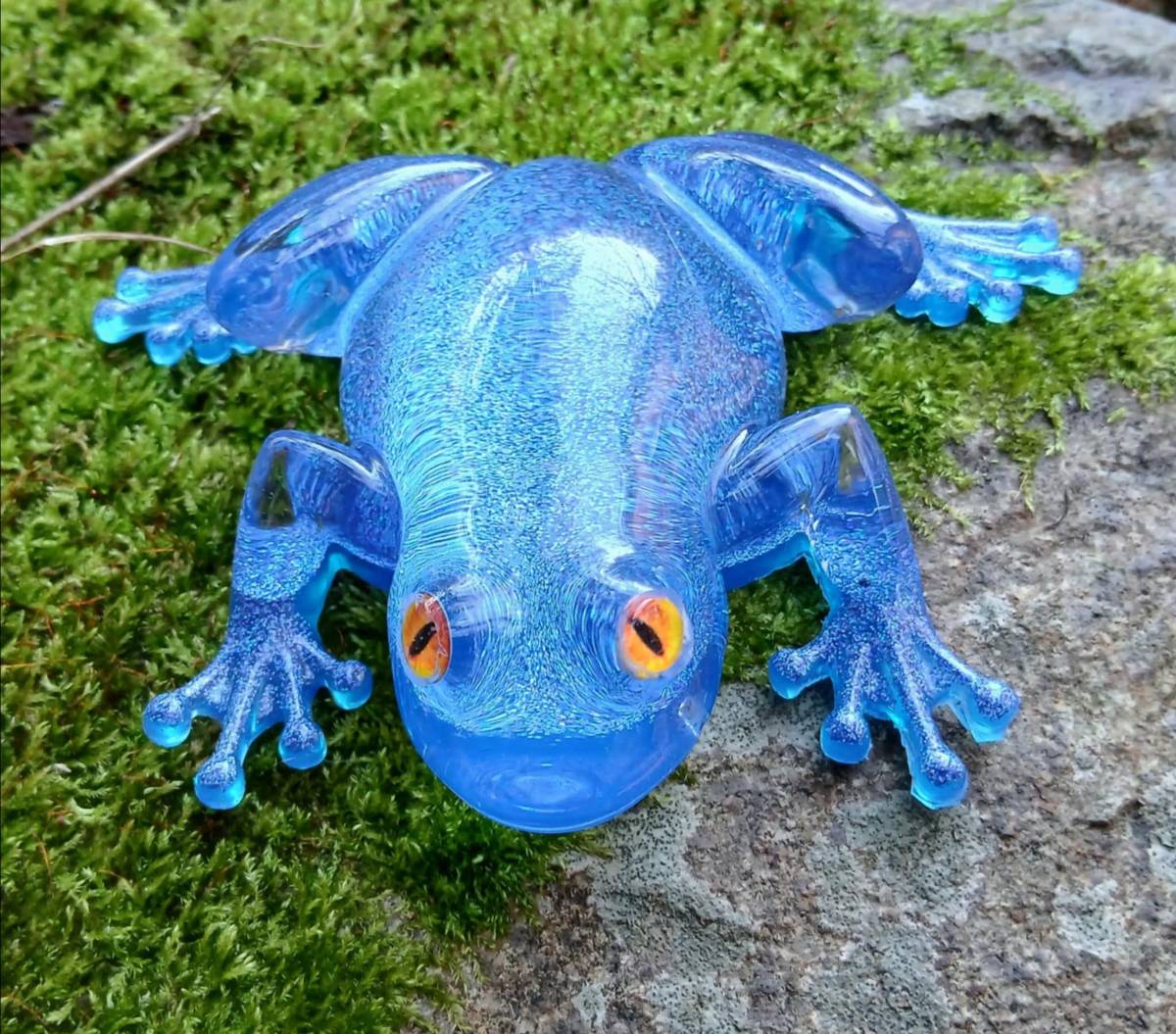 Sculpture Grenouille – Résine Époxy Pailletée Bleue