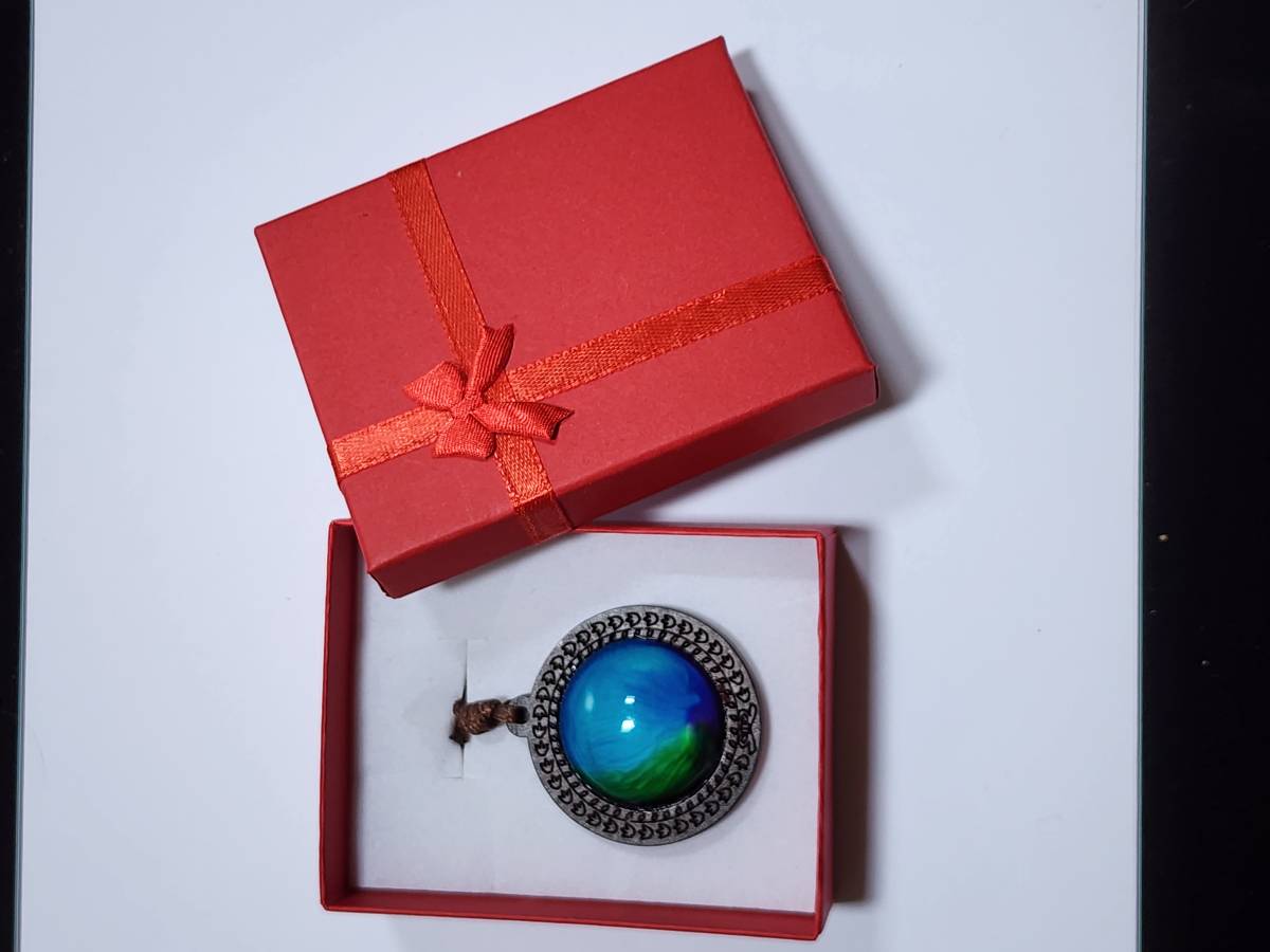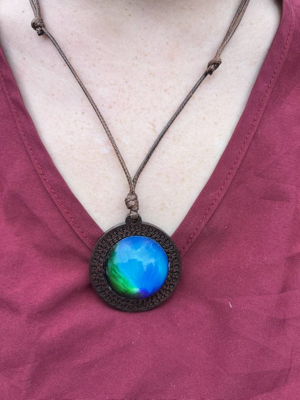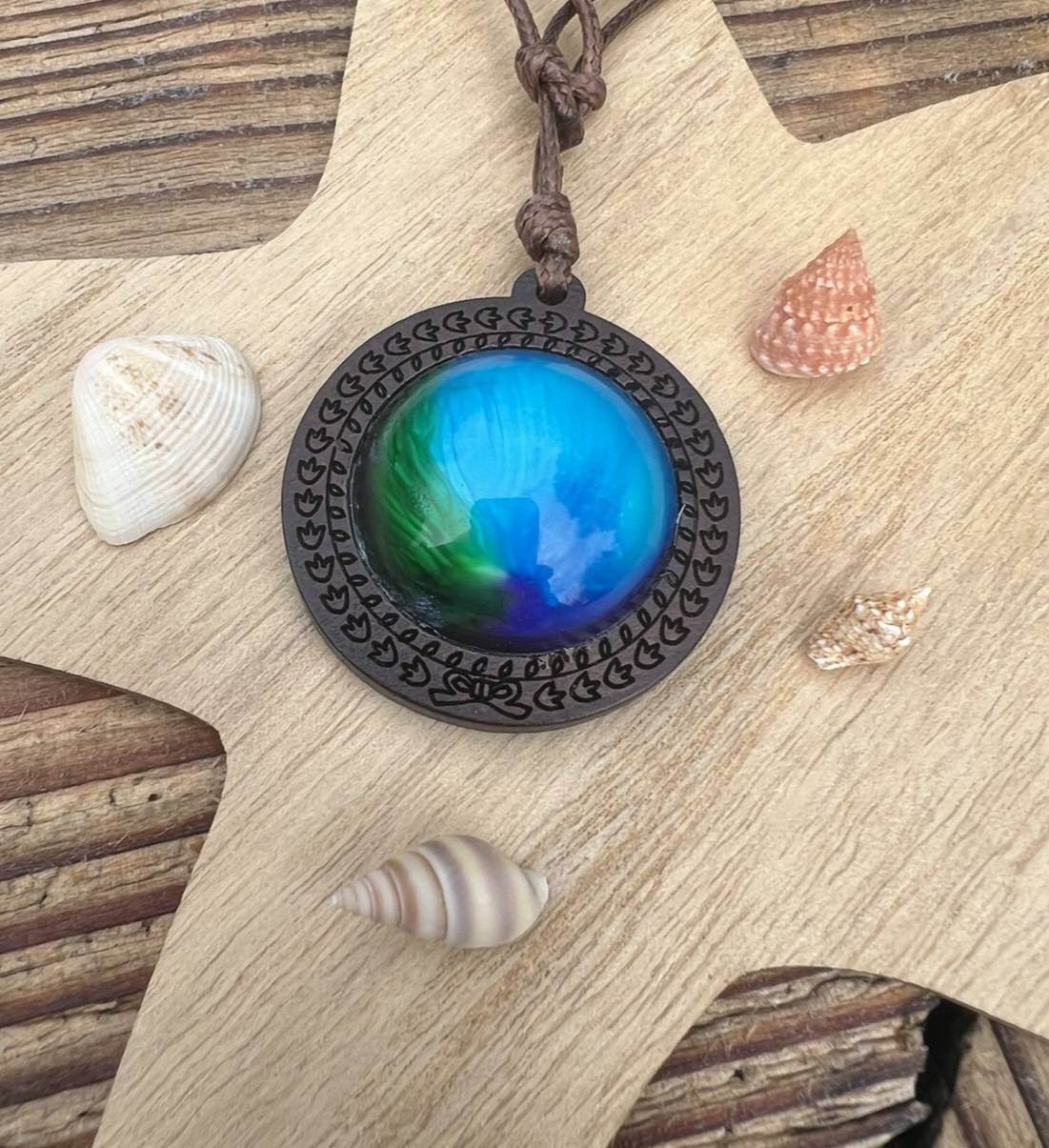 Pendentif artisanal en résine époxy capture la magie des couleurs marines.
